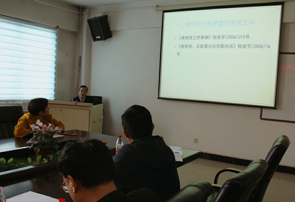 最后,李光磊院长总结发言,对各教研室及党支部的工作成绩表示肯定,对大家积极关心学院发展表示感谢,他指出教研室如何有效开展活动、迸发活力,如何厘清教研室主任责权利的关系,如何理顺教研室的设置及人与课的关系,是科学配置教学资源、提升教学质量水平的重要基础,也是学院下一步的重点工作。