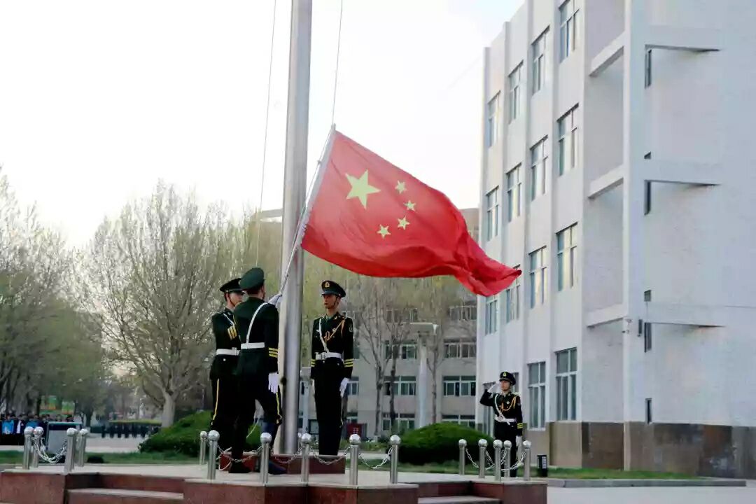 7时整,升旗仪式在庄严肃穆的气氛中开始。“迎国旗!”迎着朝阳,国旗护卫队队员迈着铿锵有力的步伐护送国旗走向国旗台。奏国歌,升国旗,雄壮的国歌声响彻校园,五星红旗缓缓升起,全体师生向国旗行注目礼。