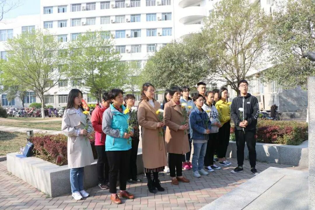 在我校第一任校长罗玉川雕像前,学生代表袁一博向大家详细讲解了罗玉川校长的生平事迹。随后,大家向雕像三鞠躬来表达自己的敬意与哀思,敬献鲜花。