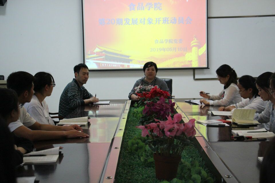 5月10日下午,食品学院在三楼会议室举行第20期发展对象开班动员会。食品学院党委副书记刘克平,党建组织员吴丹老师,团委书记杨胜利老师及食品学院第20期发展对象参加了本次会议。会议由团委书记杨胜利老师主持。