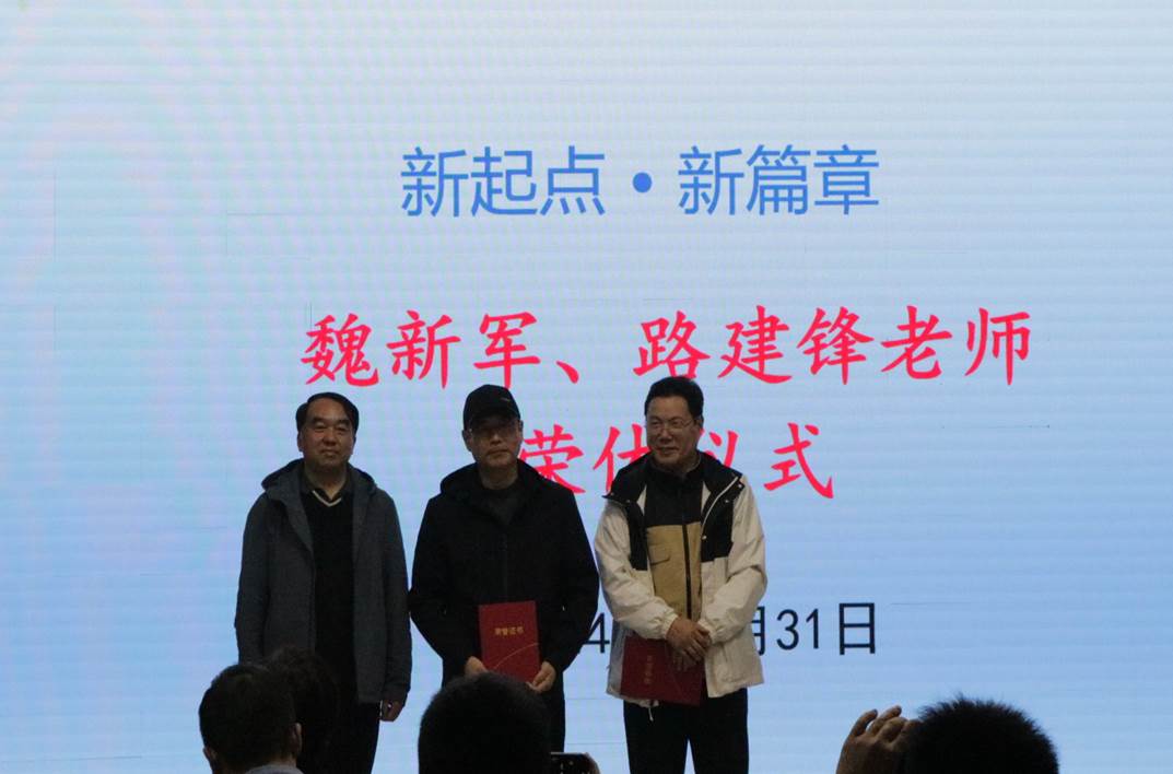 会上,院长李光磊宣读了魏新军、路建锋两位老师的退休通知。郭延成向两位老师献花并赠送退休纪念品。教师代表张浩和学生代表王慧,真挚地分享了两位老师在工作中敬业奉献、忠诚担当的点点滴滴,向他们表达了真诚的感谢、崇高的敬意和美好的祝福。