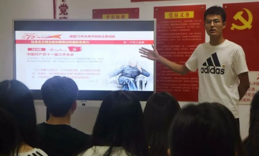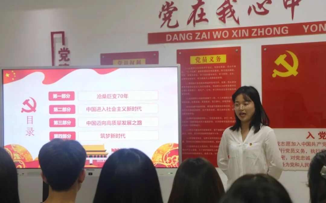 活动中,六位学生党员依次利用PPT,围绕党史国史进行了精彩的宣讲,与全体党员共同回顾了中国共产党的发展史和建国以来国家的发展变化,加深了对理论知识的学习。经过激烈角逐,于银河获得了大赛第一名,韩震颖、彭清婷获得第二名,陈彤、李颖蕾、黄燕平获得第三名。