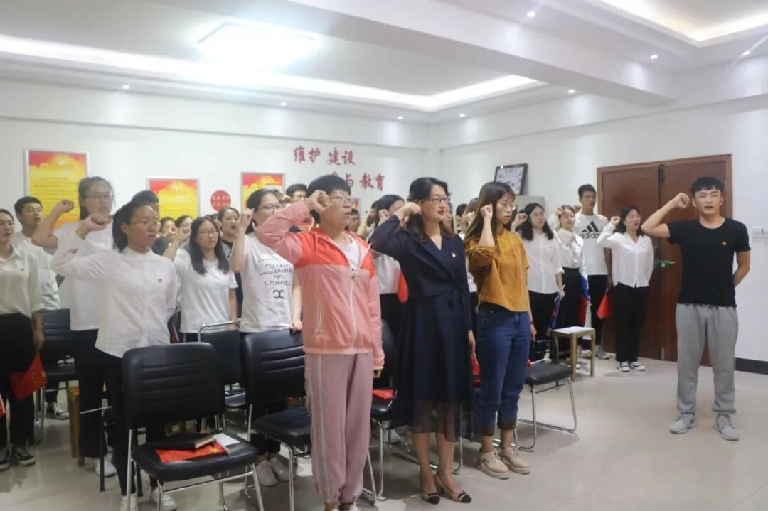 随后,全体党员起立并举起右拳,重温入党誓词。在响亮的宣誓声中,学生党员们再一次坚定了“不忘初心、牢记使命”的信心与决心,进一步强化了理想信念与责任担当。
