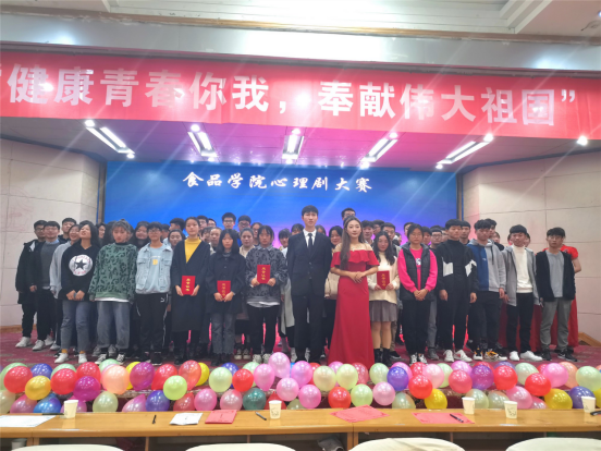 为普及心理健康知识,提高学生的心理素质,营造更加和谐温馨的校园环境,食品学院于11月17日下午,在图教201举办了“健康青春你我,奉献伟大祖国”心理剧大赛。活动由雷凯伦、亢雪晴主持。