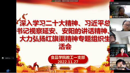 根据学校《关于召开“深入学习习近平总书记视察安阳重要讲话精神、大力弘扬红旗渠精神”专题组织生活会的通知》(校组字〔2022〕39号)要求,食品学院党委组织各支部于近期通过线上会议形式分别召开了专题组织生活会。