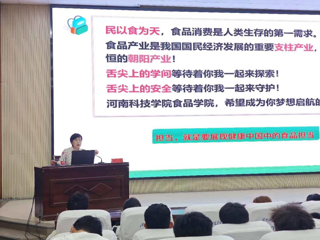 为帮助2024级新生更快适应大学生活,树立正确的价值观和奋斗目标, 9月13日,在图书馆一楼报告厅,食品学院党委书记陈腾以“筑梦健康中国,做奋发有为的新‘食’代青年”为主题,为新生讲授“开学第一课”。