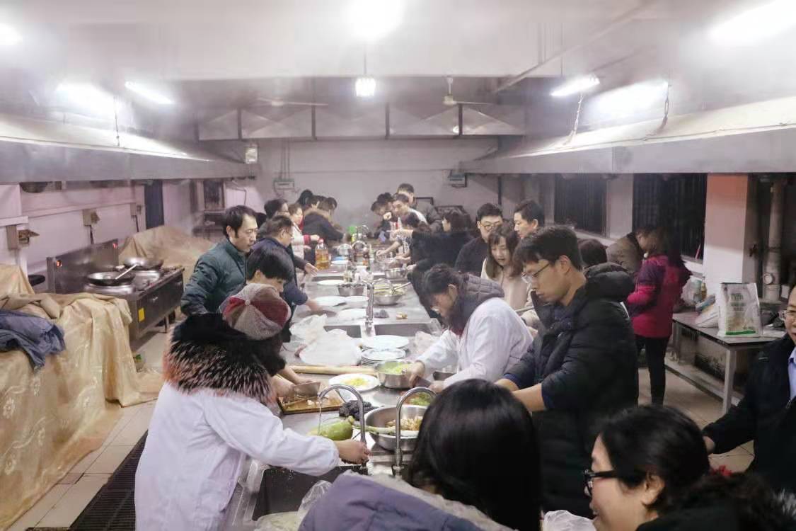 活动中,全院教师首先通过PPT观看了“盘点2019 展望2020”的专题片,一起回顾走过的2019年,展望2020年。比赛开始后,以工会小组为单位分工协作,摘菜洗菜,娴熟的包好一个又一个的特色饺子,让观众叹为观止,一个个饱满的饺子,包着的不仅仅是鲜美可口的馅料,更是一份份满满的情谊。老师们还纷纷大展厨艺,把“拿手菜”展示给大家,“爆炒大虾”、“剁椒腊肉蒸豆腐”、“西红柿炒鸡蛋”、“红烧肚片”......。现场大家都充当评委,相互品尝,交流着厨艺,一桌子的美味佳肴被大家“一抢而光”,欢声笑语融在一起,各个脸上都洋溢着灿烂的笑容。