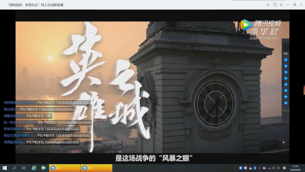 时值疫情特殊时期,食品学子依托网络在线观看了《英雄之城》武汉战“疫”纪录片,随后利用微信、微博、QQ等网络社交平台,通过“灰色头像”、“朋友圈哀悼”、“群聊禁言”、“QQ空间云端留言”等形式,表达了对抗击新冠肺炎疫情斗争牺牲烈士和逝世同胞的缅怀之情,对疫情当前冲在一线的医务工作者以及志愿者们表达了崇高的敬意。