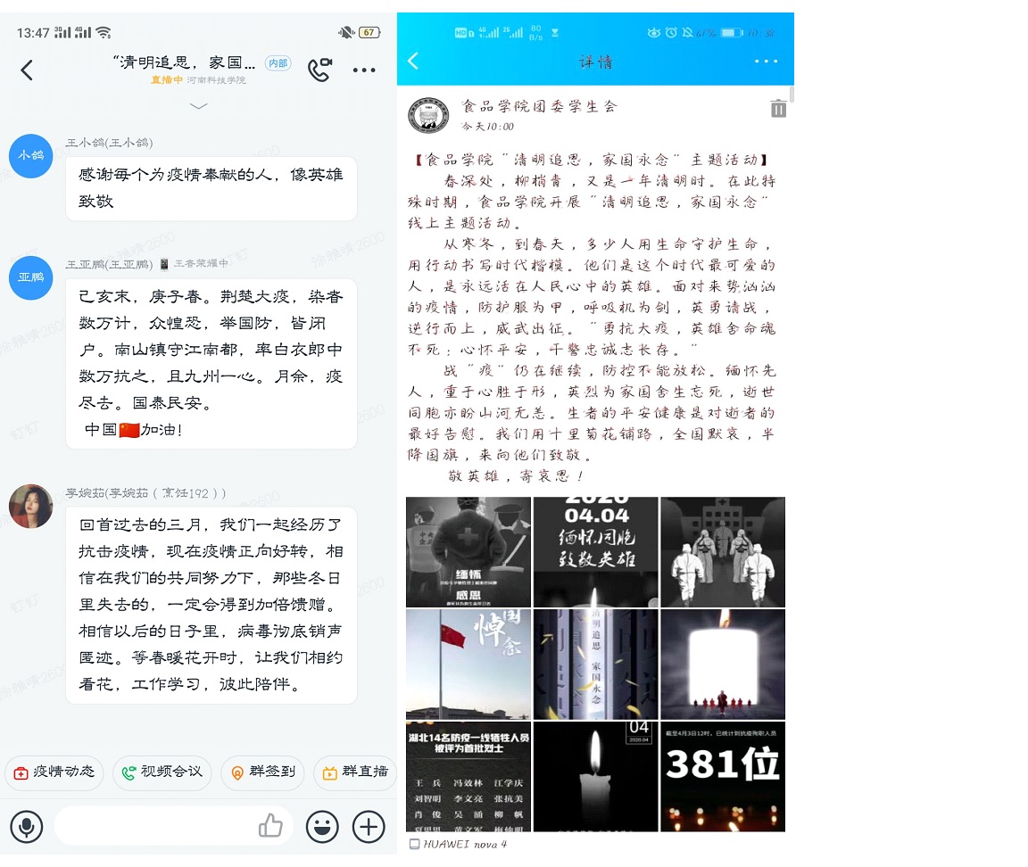 为缅怀在抗击疫情斗争中牺牲的烈士和同胞,弘扬中国传统文化,激发大学生爱国情怀,食品学院于4月4日举办了“清明追思,家国永念”线上祭奠主题活动。