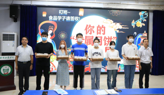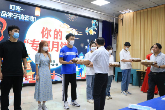 随后“月满中秋庆佳节,食品温情系学子”中秋月饼发放仪式在欢快的音乐中进行,李波和李光磊为学生代表发放食创空间特制的食品学子“专属中秋月饼”,为同学们送上最温馨的中秋祝福。