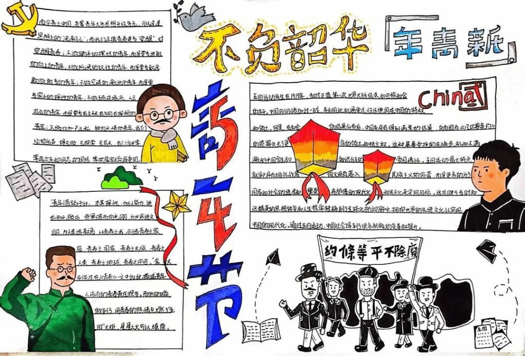 百年征程,手绘初心。学生们用一张张图文并茂、色彩鲜明、富有艺术感染力的手抄报,向五四青年节献礼,重温峥嵘岁月,传承五四精神,展现了新时代大学生青春向党、建功新时代的精神面貌,也让学生们在活动中度过了一个青春喜悦的节日。