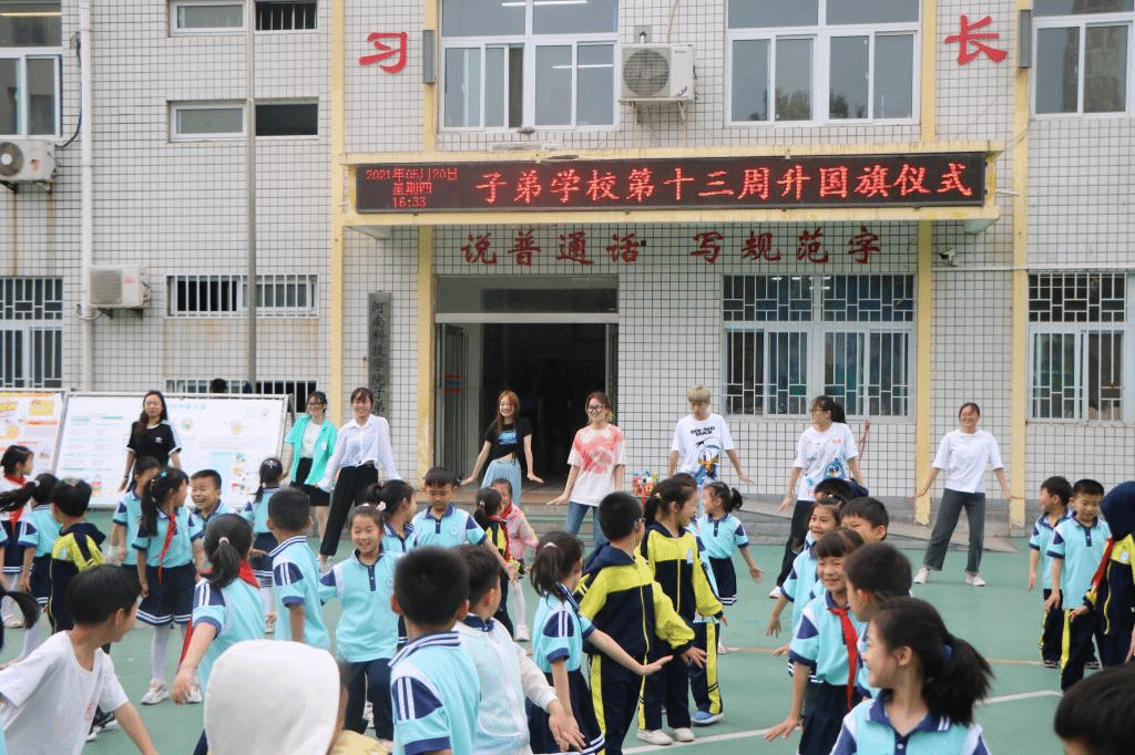 随后,学生党员带领孩子们走出教室,在小操场上学跳营养操。活动中党员们还为小朋友们发放了由食品学院教师和食创空间精心准备的酸奶、蛋挞等美食。