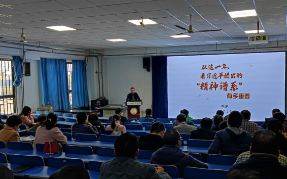 随后,李波以《从这一年,看习近平提出的“精神谱系”有多重要》为题做了理论宣讲。他从“伟大抗疫精神”“伟大抗战精神”“伟大抗美援朝精神”“科学家精神”“特区精神”“探月精神”“中国载人深潜精神”“劳模精神、劳动精神、工匠精神”“西迁精神”九方面,阐述了“精神谱系”的内涵和意义。党在不同历史阶段的价值理念、理论发展和实践创新是中华民族优秀传统文化与党的政治文化有机融合的成果,是中国共产党人和中华民族以爱国主义为核心的民族精神和以改革创新为核心的时代精神的充分展现。一系列伟大精神,构筑起了中国共产党人的精神谱系,为立党兴党强党提供了丰厚滋养。李波指出,广大教师要善于从党史学习中不断筑牢信仰之基、补足精神之钙、把稳思想之舵,将“精神谱系”融入血脉,并内化为坚定的政治方向和强劲的前进动力,攻坚克难、砥砺奋进,不断把学院各项事业推向前进;要深入了解各种精神的价值内涵,将其有机地融入到课程思政和三全育人中去,提升学生的价值追求和思想修养。