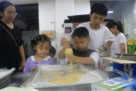 美食DIY是夏令营的特色课程,本次夏令营的美食DIY课程分为冰淇淋制备、烘焙课程和制作蛋糕三部分,分别由牛生洋、高海燕、袁涛带领小朋友们在我院的食创空间进行。在各位老师的指导下,小朋友们乐此不疲的参与了整个过程,一起制作出了冰凉爽口的冰淇淋、清香可口的牛角包、香甜适口的蛋挞和芳香四溢的纸杯蛋糕。美食DIY课程不仅增强了小朋友们的动手能力,也培养了他们团结协作的默契,感受到了不一样的食品科学乐趣,同时也丰富了孩子们的暑假生活。