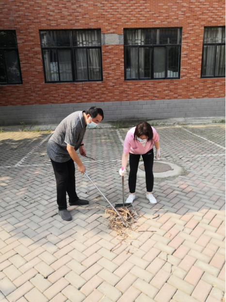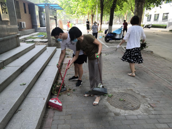 学院党员同志们对3号、4号、5号教学楼外马路及附近停车场进行了全面清扫。
