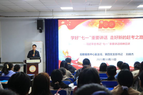 为深入开展党史学习教育,提升党员思想政治觉悟,10月20日晚,后勤服务中心副主任刘晓杰为食品学院学生宣讲习近平总书记“七一”重要讲话精神,宣讲主题为:“学好‘七一’重要讲话 走好新的赶考之路”。