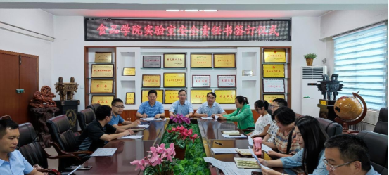 会议举行了“食品学院实验室安全责任书签订仪式”,李波、李光磊分别与各实验室负责人在“实验室安全责任书”上签字。本次会议再次明确了食品学院实验室安全管理责任体系并对食品学院2021年度实验室安全检查工作进行了安排部署。