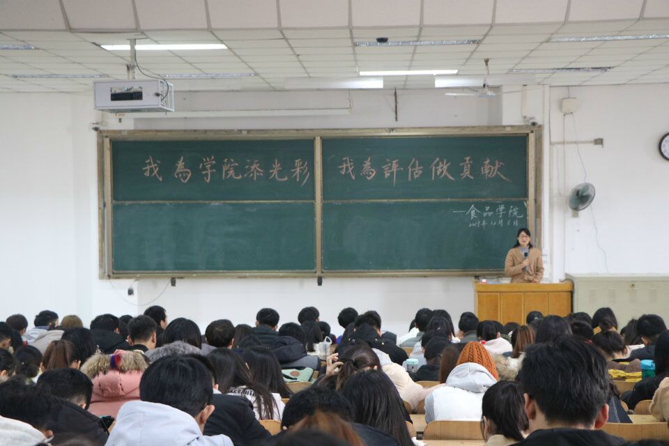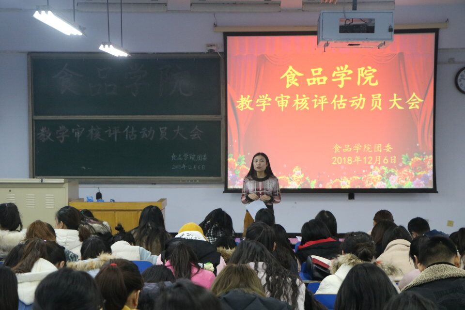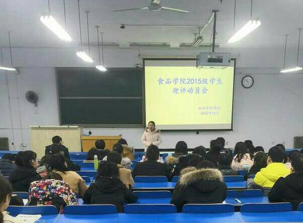 为配合学院落实学校本科教学审核评估相关工作有序推进,2018年12月6日,食品学院分别召开各年级学生动员会,安排部署本科教学审核评估相关工作。会议由各年级辅导员主持,全体学生参加。