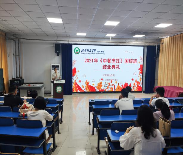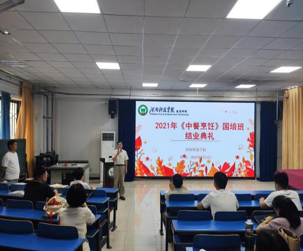 7月2日,食品学院在五合一教室举办了2021年度河南省中等职业院校专业带头人领军能力研修中餐烹饪国培班结业仪式。我校继续教育学院副院长杨景旗、食品学院副院长张令文,培训班班主任李艳丽、毕继才、聂远洋等三位老师及全体参训学员参加了结业仪式。会议由食品学院烹饪专业负责人毕继才主持。