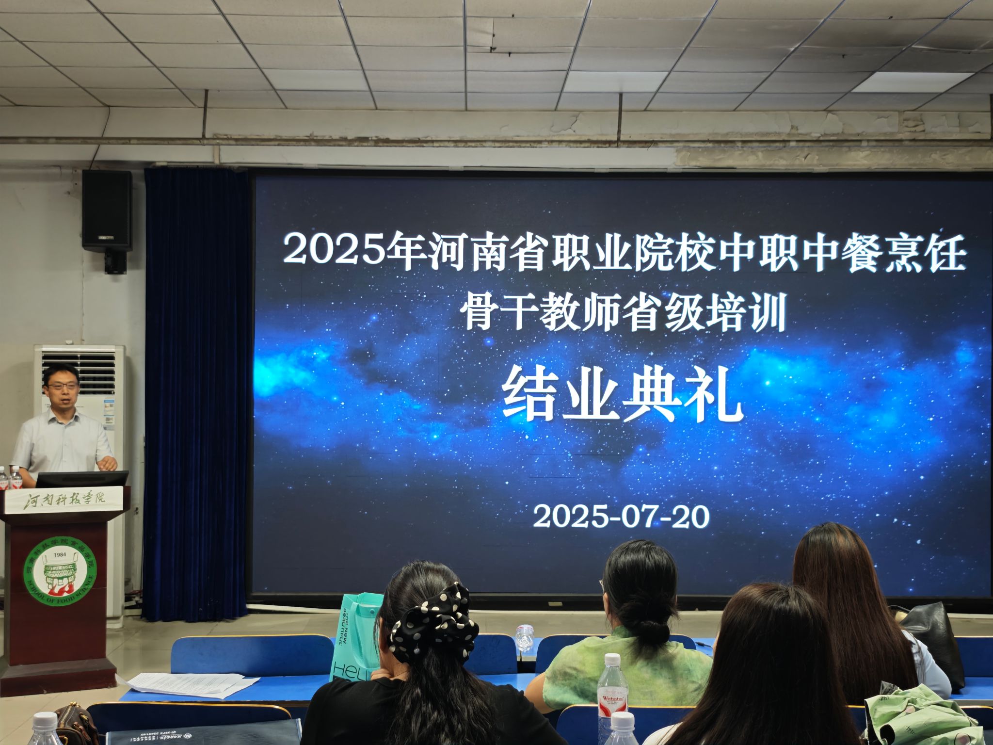 7月20日,食品学院在五合一教室隆重举行2025年河南省职业院校中餐烹饪骨干教师省级培训班结业仪式。我校成果转化与合作办公室副主任何鸿举、食品学院副院长张令文、冉军舰,培训班班主任毕继才、聂远洋及全体参训学员出席。仪式由毕继才主持。