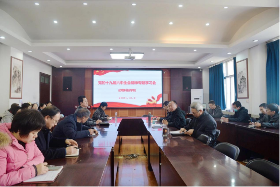 12月2日下午,动物科技学院在E302会议室举行党的十九届六中全会精神宣讲会,学院党政领导、全院教职工参加会议。会议由院党委书记郭东升主持。