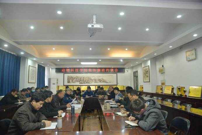 为进一步加强学院党风廉政建设,筑牢拒腐防变思想防线,12月16日下午,动物科技学院在E302会议室召开集体廉政约谈暨“以案促改”警示教育会,学院党政领导班子、党委委员、党支部书记及科级以上干部参加会议,会议由学院党委书记郭东升主持。