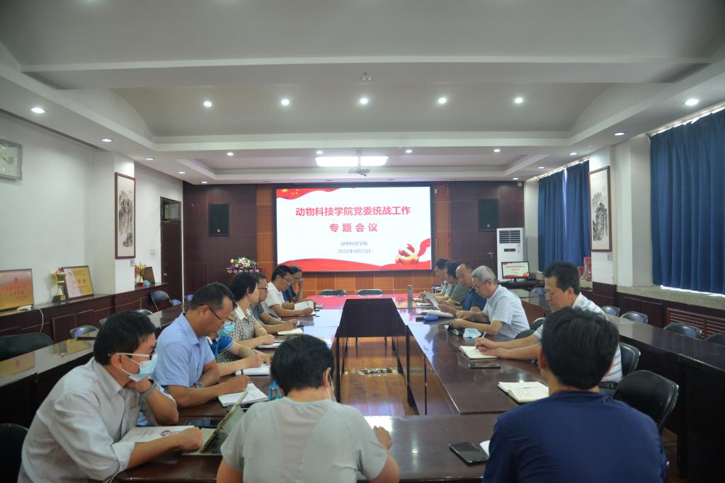 9月15日下午,动物科技学院党委召开统战工作专题会议,传达学校学习贯彻省委统战工作会议精神专题会议精神,并结合学院统战工作实际研究讨论贯彻落实举措。学院领导郭东升、杨国友、陈金山、张天安出席会议,党委委员、学院各党支部书记参加会议。会议由学院党委书记郭东升主持。