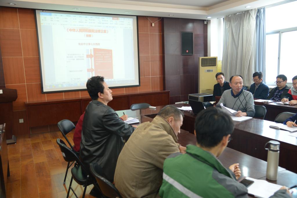 郭东升首先带领全体党员学习《中华人民共和国宪法修正案》、《中华人民共和国监察法》和《中国共产党纪律处分条例》(2018版),对比了新修订的具体内容,解读了《中华人民共和国监察法》的亮点,要求全体党员认真、深入学习,切实加强党的纪律建设。