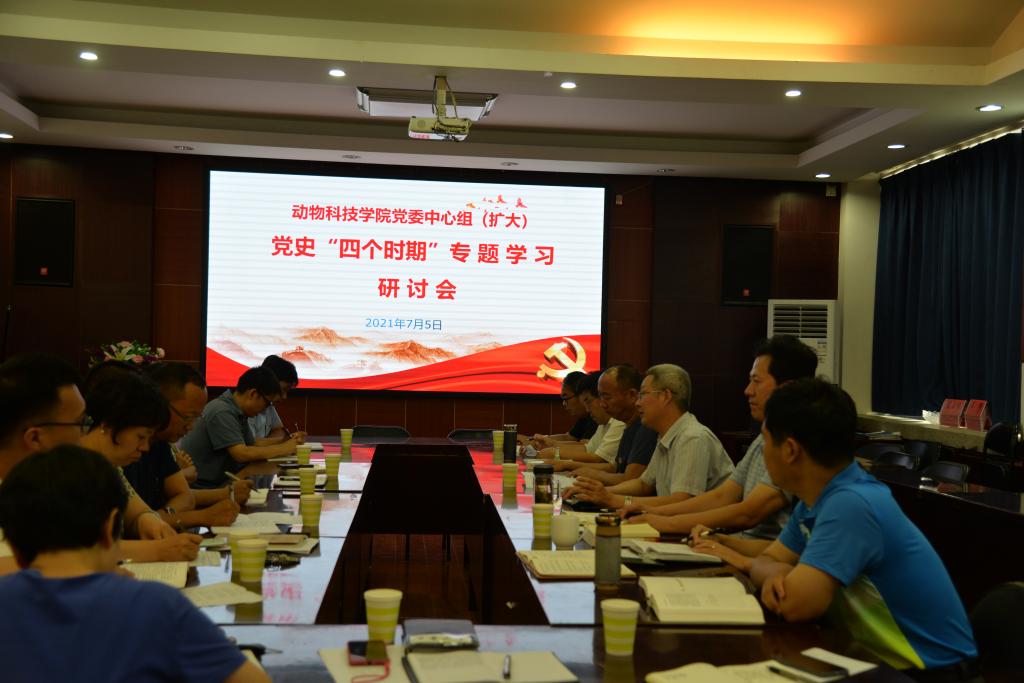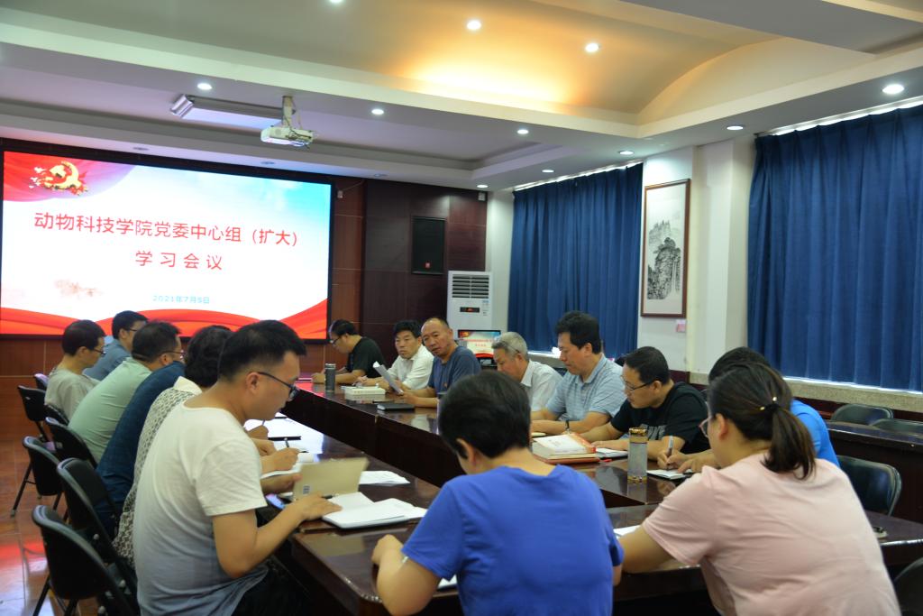 为扎实推进党史学习教育,7月5日,动物科技学院党委理论学习中心组(扩大)召开党史学习教育暨“四个时期”专题学习研讨会。学院党政领导、党委委员、各支部书记和全体学工干部参加,会议由院党委书记郭东升主持。