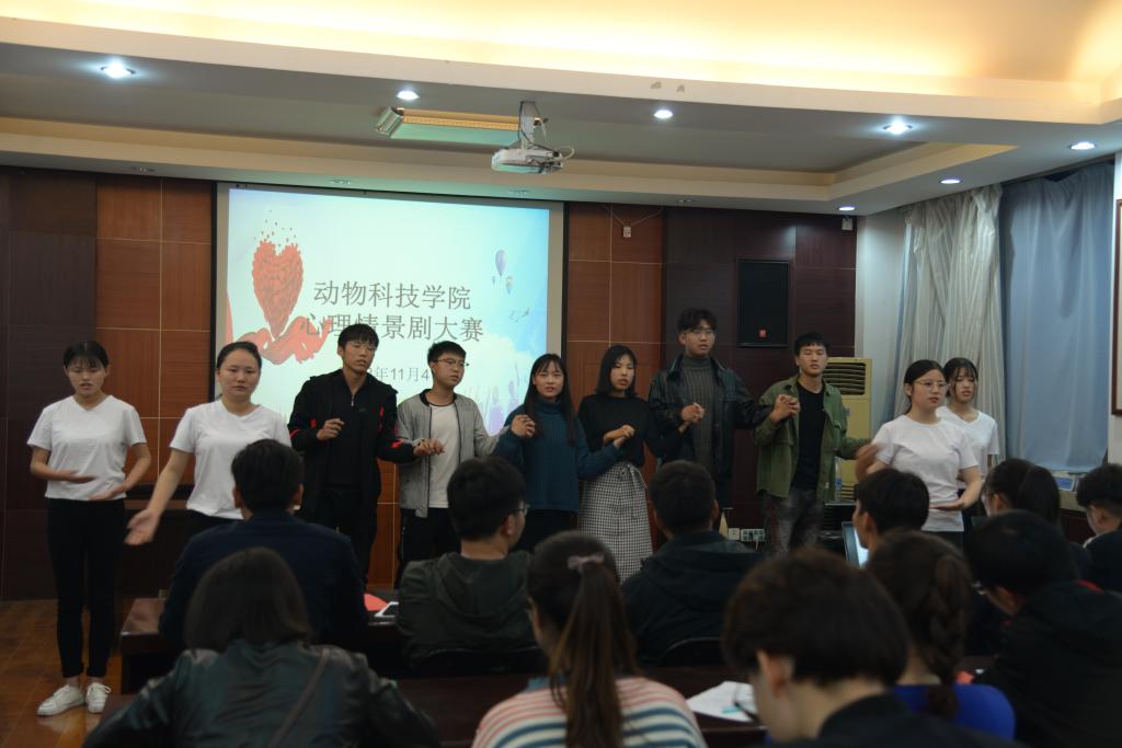 为深入落实全国教育大会和全国全省高校思想政治工作会议精神,不断加强和改进我校师生心理健康教育工作,根据《关于开展“2018年度心理健康教育宣传月”活动的通知》精神,我院于11月4日举行动物科技学院第三届心理情景剧大赛。