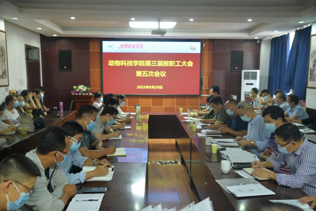 9月29日下午,动物科技学院第三届教职工大会第五次会议在E302会议室举行。会议由学院党委副书记、分工会主席杨国友主持。