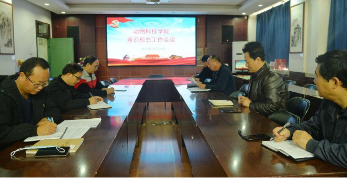 10月10日上午,动物科技学院在E302会议室召开意识形态工作会议,学院党委委员、全体辅导员和学院网络维护管理人员参加会议,会议由院党委书记郭东升主持。