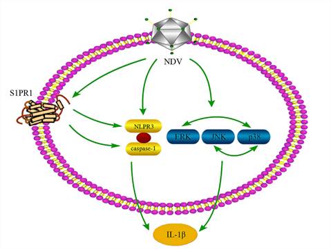 图1NDV诱导S1PR1表达,并通过NLRP3/caspase-1炎性小体促进IL-1β表达
