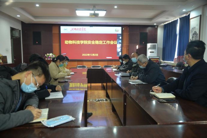 12月2日上午,动物科技学院通过线上线下相结合的方式,召开安全稳定工作会议,学院领导班子成员、实验室主任,科研平台、兽医院负责人和中心实验室成员及全体辅导员参加会议。会议由院党委书记郭东升主持。