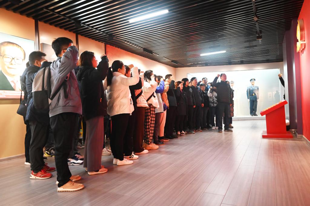 在讲解员的带领和解说下,大家深入地了解了河南太行八路军抗战历史,聆听了革命先烈的英雄事迹,参观了纪念馆内的珍贵文物资料、历史图片及再现的历史场景。一场场为国为民的动人故事,一件件承载历史记忆的抗战实物,进一步加深了全体党员对党的先进性、纯洁性的理解,思想灵魂受到了深刻的革命洗礼,参观结束后,全体党员在学院党委书记胡付广的带领下,面对鲜红的党旗,举起右拳,重温入党誓词。