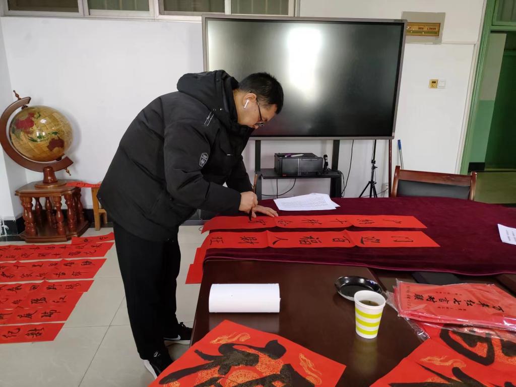在2023年新春佳节即将来临之际,为营造祥和、欢乐、喜庆的节日氛围。1月5日上午,动物科技学院在E407会议室开展了“迎新春,写春联,送春联”为主题的志愿服务活动。本次活动特别邀请陈永耀和王永强两位老师免费为全体学院教职工现场书写,发放春联,为教职工送上新春的祝福。