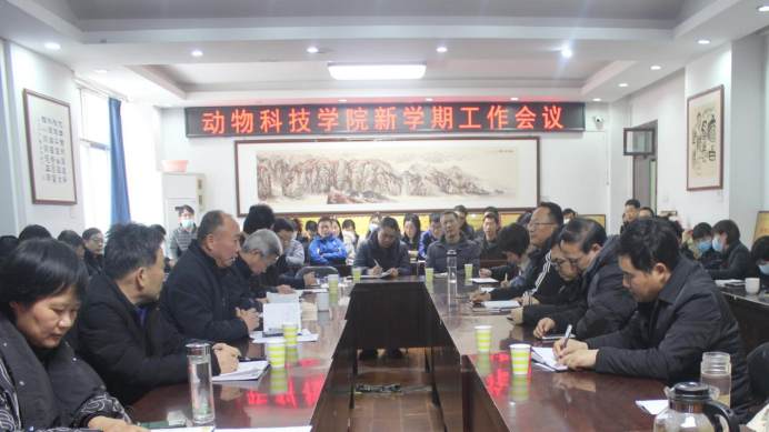 2月16日下午,动物科技学院在E302会议室召开新学期工作会议,学院领导班子成员、全体教职工参加会议,会议由院党委书记郭东升主持。