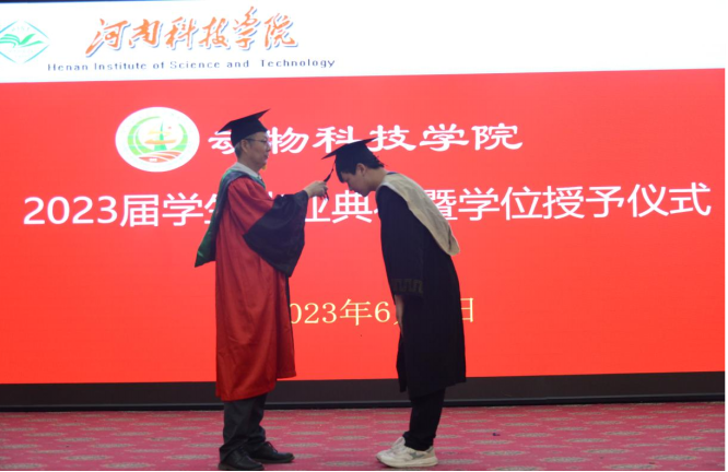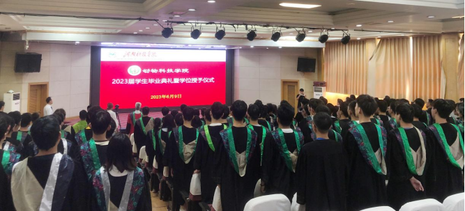 6月9日上午,动物科技学院于图教201举办2023届学生毕业典礼暨学位授予仪式,学院领导班子成员、导师代表、团委辅导员以及2023届本科、研究生毕业生200余人参加。仪式由学院党委书记胡付广主持。