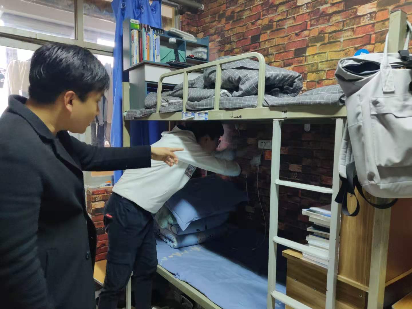 走访过程中,各辅导员针对宿舍安全隐患进行排查并深入教育,提醒学生注意寝室用电安全,坚决杜绝在寝室使用违规电器,严禁在公寓内拉扯电线、给电动车电池充电,要求寝室做到人走断电,严禁在寝室内抽烟、储酒酗酒等。另外,老师们还提醒大家要做到勤打扫、勤通风、勤晾晒衣,注意个人卫生和公共卫生,动员大家积极参与到平安校园建设中来。