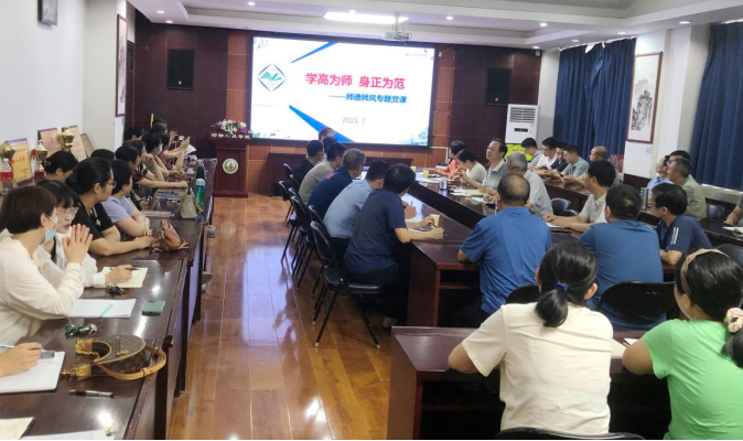 7月2日下午,动物科技学院党委书记胡付广于E302会议室为学院教职工讲授师德师风专题党课,全体教职工参加。