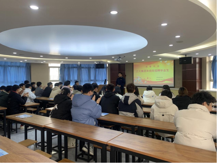 正大集团是世界上最大的华人跨国公司之一,由华裔实业家谢易初、谢少飞兄弟于1921年在泰国曼谷创办。正大集团业务遍及20多个国家和地区,下属400多家公司,员工人数近20万人。此次来学院招聘宣讲的是正大集团河南区下辖百万级万蛋鸡场厂长杨冰乐和人事部门主管王民丰等企业主要负责人。