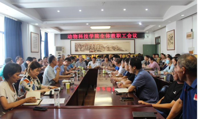9月2日下午,动物科技学院在E302会议室召开新学期全体教职工大会,学院领导班子成员、全体教职工参加会议。会议由学院院长马金友主持。
