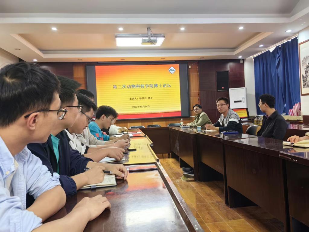 10月24日下午,动物科技学院第三次博士论坛在E302会议室举办。此次论坛由动物科技学院徐彦召博士主讲。动物科技学院的教授、博士和部分相关专业的老师参加了此次博士论坛。