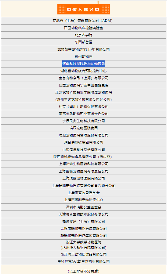 中国兽医协会于8月1日至10月7日期间面向兽医相关企事业单位及从业人员进行了广泛的征集活动,得到了行业内众多单位和个人的积极响应。经过严格的审核和筛选,河南科技学院教学动物医院凭借其在兽医公益领域的杰出贡献成功入选。