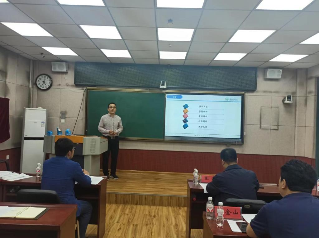 本次比赛有7名教师参加,分为两个环节,第一环节是教学演示,参赛教师们依次上台展示说课、课堂设计和模拟授课,运用多种新颖教学方法引导“学生”积极思考、互动交流。第二环节是评委点评。最终,郭利亚、文禹粱、徐之勇荣获一等奖,常晓博、韦光辉、韩艳辉、张龙飞荣获二等奖。