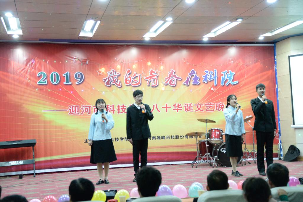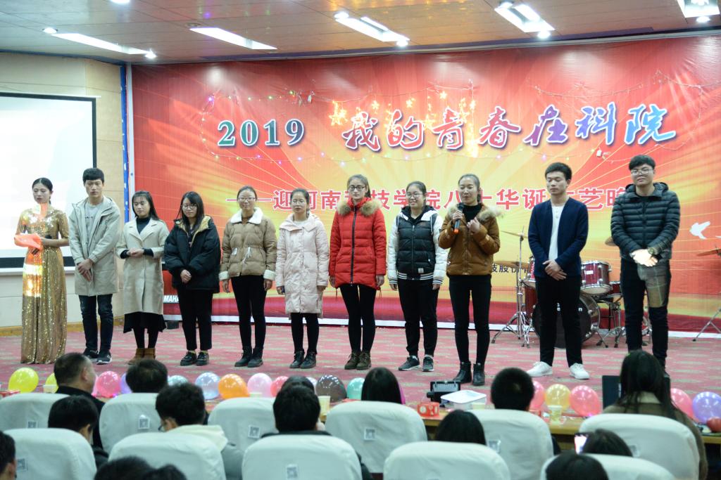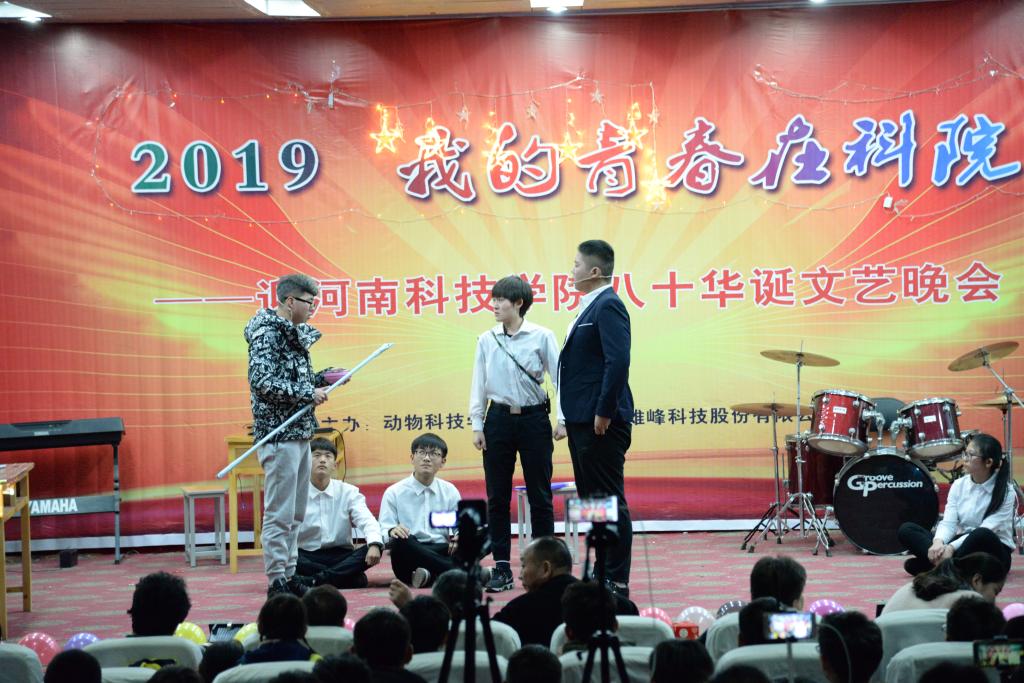 12月24日晚,由动物科技学院和河南雄峰企业共同主办的“2019,我的青春在科院”迎河南科技学院八十华诞文艺晚会在图教201举行。学校相关职能部门领导、学院党政领导、河南雄峰企业负责人以及学生代表300余人一起观看了晚会。