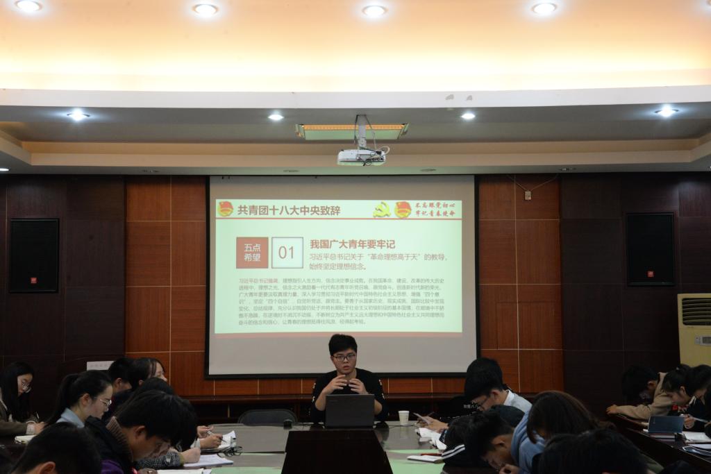 按照动物科技学院2018年团学干部培训暨“青马工程”培训方案,12月2日晚,动物科技学院团委学生会主席任战士为全体学员讲授“共青团十八大精神”。