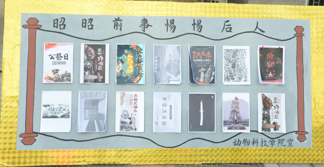 12月13日,动物科技学院选取部分优秀作品在校园内进行展览,吸引了大批同学驻足观看。一幅幅手抄报,抒发了同学们不忘屈辱、守护和平的信念与力量,一篇篇文章,表达了动科学子铭记历史、捍卫和平、矢志复兴的决心和信心。