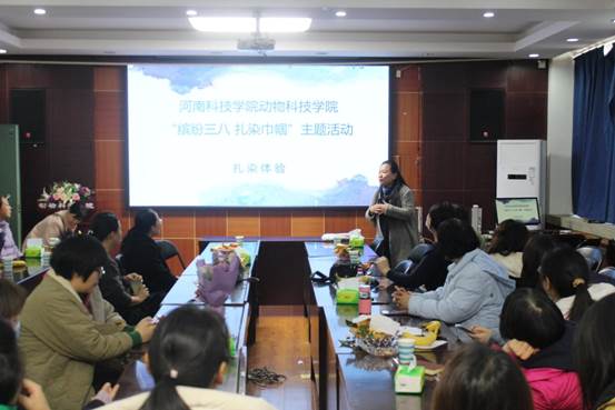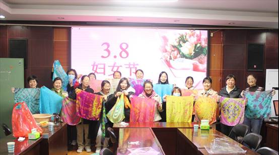 活动设置了“不负芳华”主题茶话会和“炫彩飞扬”手工扎染两个内容,在茶话会环节,特别邀请了校医院院长李艳丽做女性健康专题讲座,李院长以“不负芳华”为主题,为女教职工们普及了女性健康医学常识,有效引导大家走出女性健康的误区与盲区;在送礼物环节,特邀了学院男教职工代表为在场女教职工送上节日的礼物和祝福。在“炫彩飞扬”手工扎染环节,特别邀请了服装学院副院长郭海燕老师为女教师们讲解丝巾扎染工艺及技法,在郭海燕老师的指导下,大家“沉浸式”体验了扎染制作,感受扎染技艺的独特魅力。