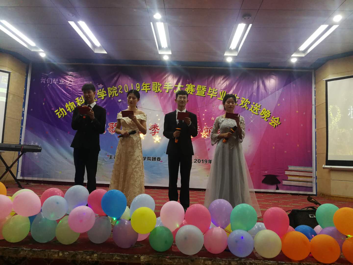 5月30日,我院在图教201举办了主题为“献歌毕业季,筑梦新时代”的2019年歌手大赛暨毕业生欢送晚会。党委副书记陈松玲,团委书记张书响,正科级辅导员高莉以及220余名在校生到场参加。